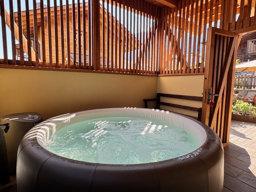 E dopo le escursioni, spazio anche per il benessere. Questa la vasca idromassaggio, che può essere riservata nel pomeriggio, così come la sauna ad infrarossi.