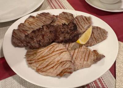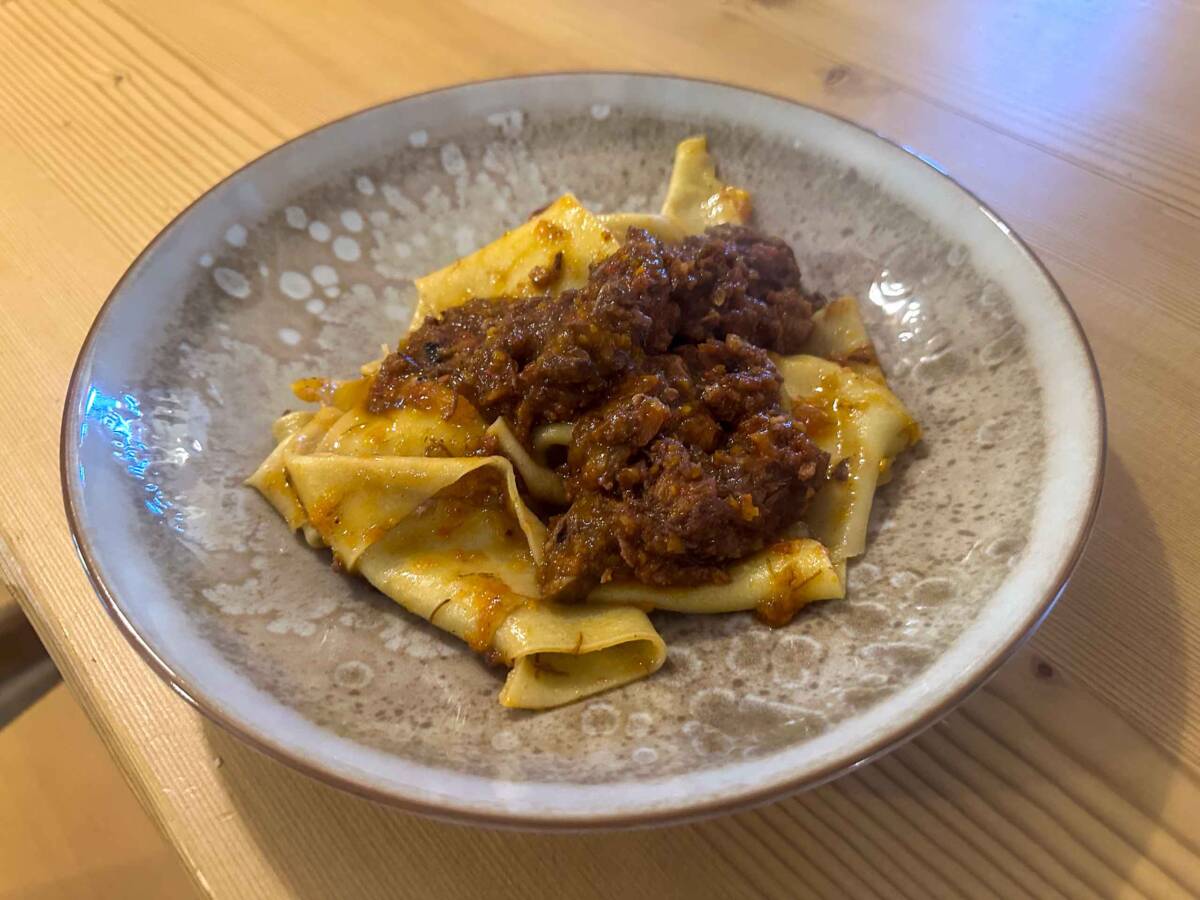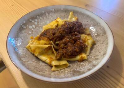 Pochi piatti, ma realizzati con grande cura, tra cui la pasta fresca di vario tipo; polenta, salsiccia e formaggio fuso e dolci molto invitanti.