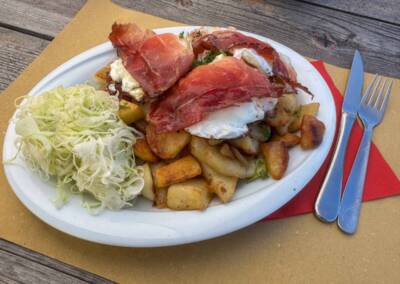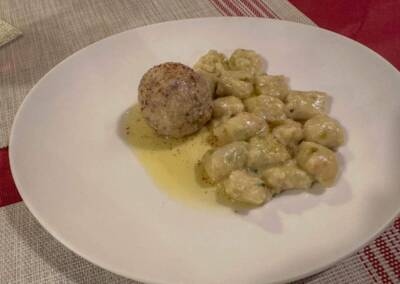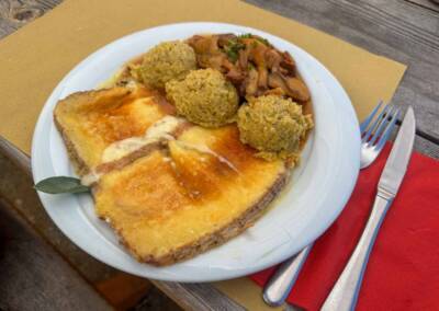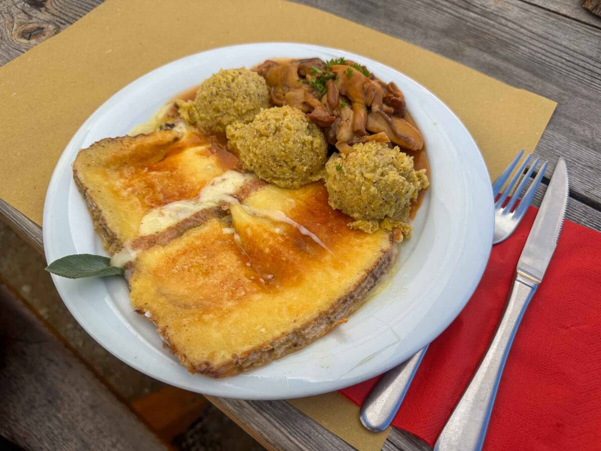Senza dubbio all’Agritur Ruatti, ma ricordatevi di prenotare in anticipo se volete trovare posto. Per noi torta di patate con formaggi, affettati e cavolo cappuccio, bis di primi con canederlo e strangolapreti ai porri e grigliata mista con la loro carne. Ai loro dolci non riusciamo mai ad arrivare, ma è sempre un’ottima scusa per tornare!