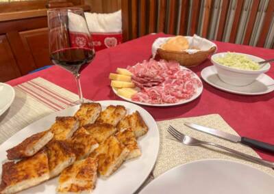 Noi questa volta siamo stati all’Agritur Ruatti a Pracorno, con camere semplici, ma accoglienti. Il plus di dormire qui è senza dubbio il contatto con la famiglia Ruatti, che gestisce l’azienda agricola con grande amore e passione. Qui infatti si possono mangiare (vedi sotto) le specialità del posto, tra cui la torta di patate con affettati e formaggi loro. Carne e salumi derivano dai loro animali, che mangiano solo il fieno dei loro campi. Formaggi, ricotte e yogurt vengono ovviamente dal loro caseificio, e così via con le marmellate, il succo di mele, il miele, gli ortaggi,… il consiglio è quello di fare una bella scorta e di portarvi a casa queste bontà come ho fatto, tra pancetta, coppa, formaggio fresco e lucaniche.