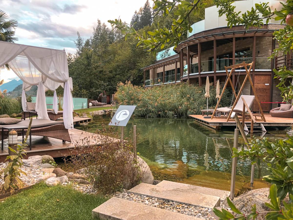 Un hotel a cinque stelle ai piedi del Catinaccio che offre servizio di Day Spa. Grazie a un sofisticato impianto di elettrolisi del sale qui non si utilizza cloro. La piscina interna ed esterna è a 30 °C, si può accedere al percorso Kneipp e al bacino Kneipp sul prato alpino che circonda l’hotel ai piedi del Catinaccio. A disposizione ben quattro saune: la sauna al legno di pino cembro meravigliosamente profumata, la delicata sauna all’argilla, la tradizionale sauna nel fienile e il bagno turco. Dopo la sessione di sauna si può trovare refrigerio nella grotta crushed ice. Avvolti in un morbido accappatoio, ci si può stendere poi sui lettini di fieno o ad acqua e godersi la splendida vista sulle montagne con un rinfrescante bicchiere d’acqua della sorgente di Plafötsch. Vi attendono anche alcune novità: la sauna panoramica con vista mozzafiato, vasca idromassaggio all’aperto al sale marino, stanza del sale per l’inalazione, zona relax con lettini a infrarossi. Tutte le info QUI.