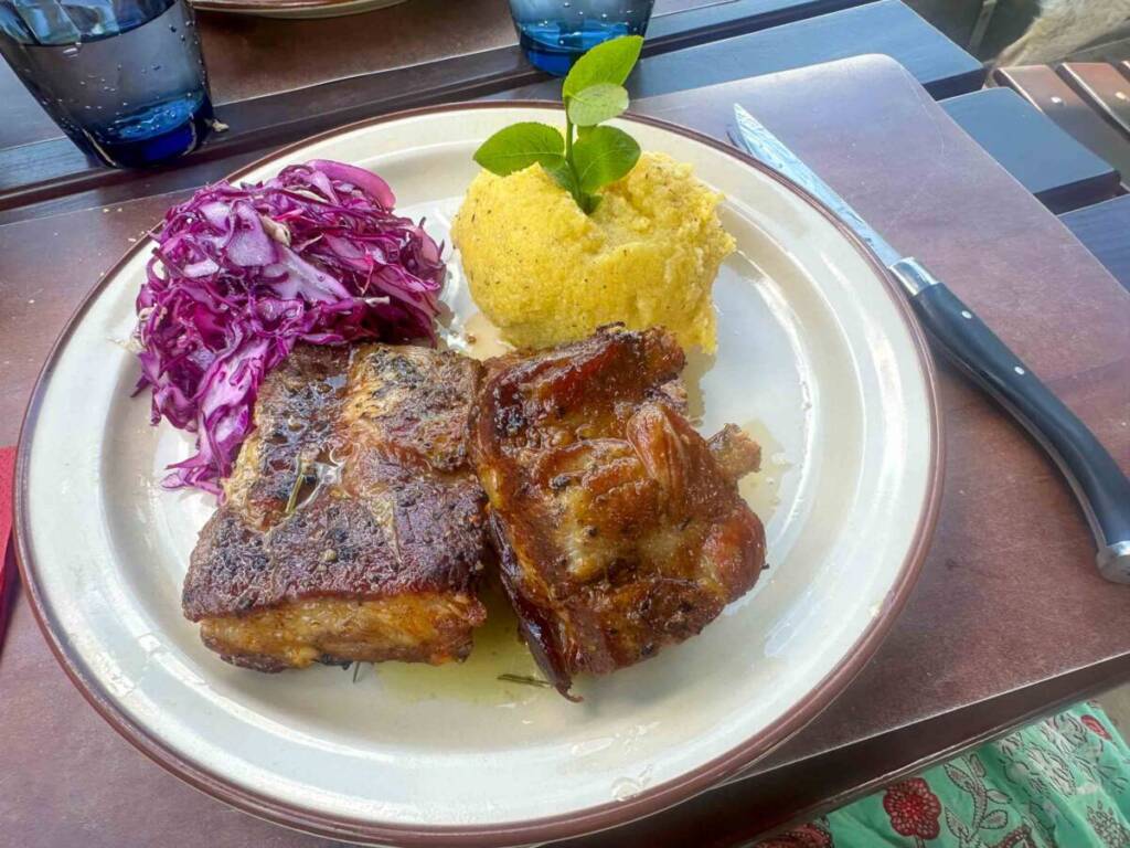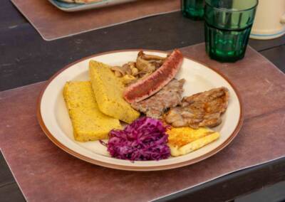 E poi per pranzo siamo tornati al rifugio per mangiare le costine con polenta e cavolo cappuccio…