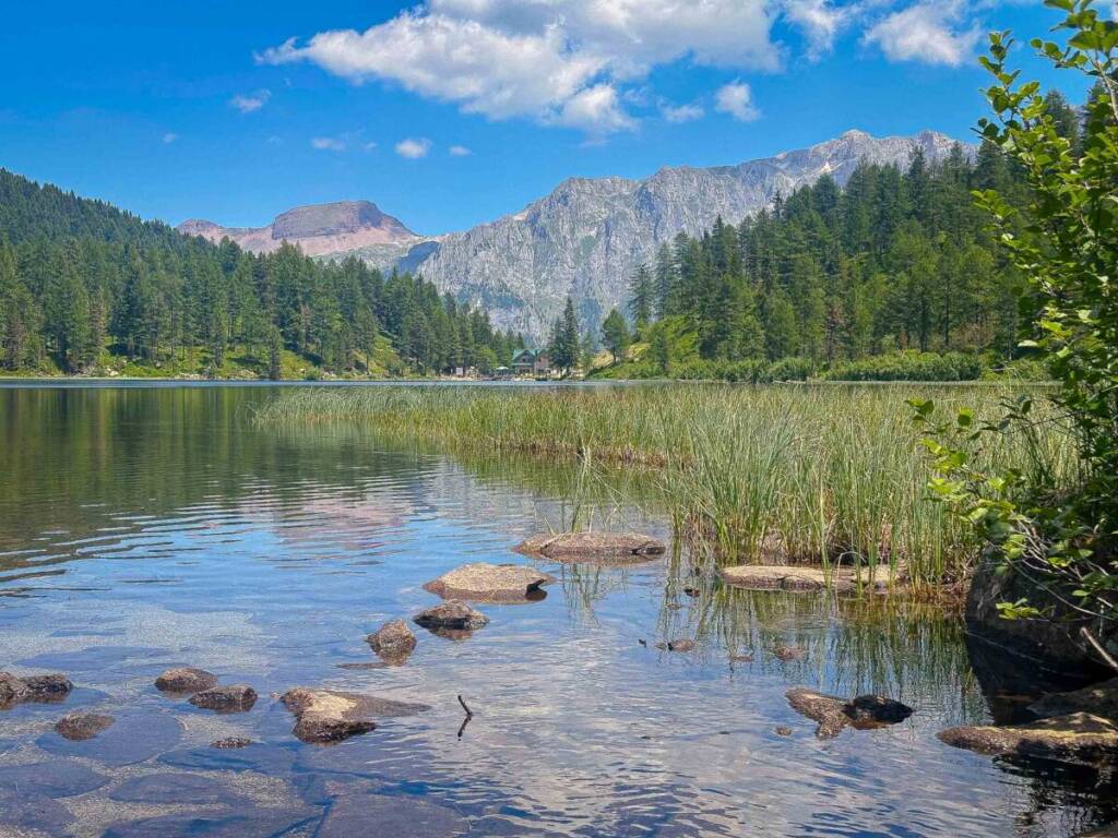 Luogo magico il Rifugio Lago delle Malghette, costruito sulla riva dell’omonimo lago, a cavallo tra la Val Rendena e la Val di Sole e facilmente accessibile da entrambe le parti. Un classico rifugio con la particolarità di essere proprio a ridosso dell’acqua, con una terrazza panoramica, inserito in un contesto naturale incontaminato. Anche perchè tutelato dal Parco Naturale Adamello Brenta.