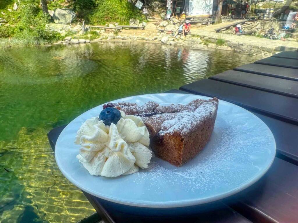Ci sono tornata poi, appunto, per dormire. Necessario prenotare per tempo, soprattutto nel weekend, prezzo accessibile. 120 euro mezza pensione a testa, credo abbiamo usufruito di uno sconto per la prenotazione a ridosso del pernottamento. Le camere sono tre, una più bella dell’altra. Tutte in legno massiccio, con doccia vetrata e ogni comfort. Noi siamo stati nella Rododendro, vista lago. Non vi dico che meraviglia potersi svegliare lassù e bere un caffè al mattino sulla terrazza deserta.