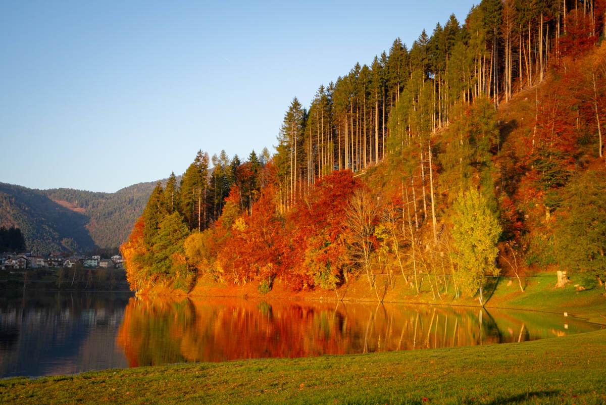 - Lago di Cei, Vallagarina. Ad una ventina di minuti da Trento e da Rovereto potete raggiungere in macchina questo specchio d’acqua che in autunno è un incanto. L’idea in più: una passeggiata di un’oretta fino a Malga Cimana, ristorante aperto nel weekend anche a novembre il sabato e la domenica.