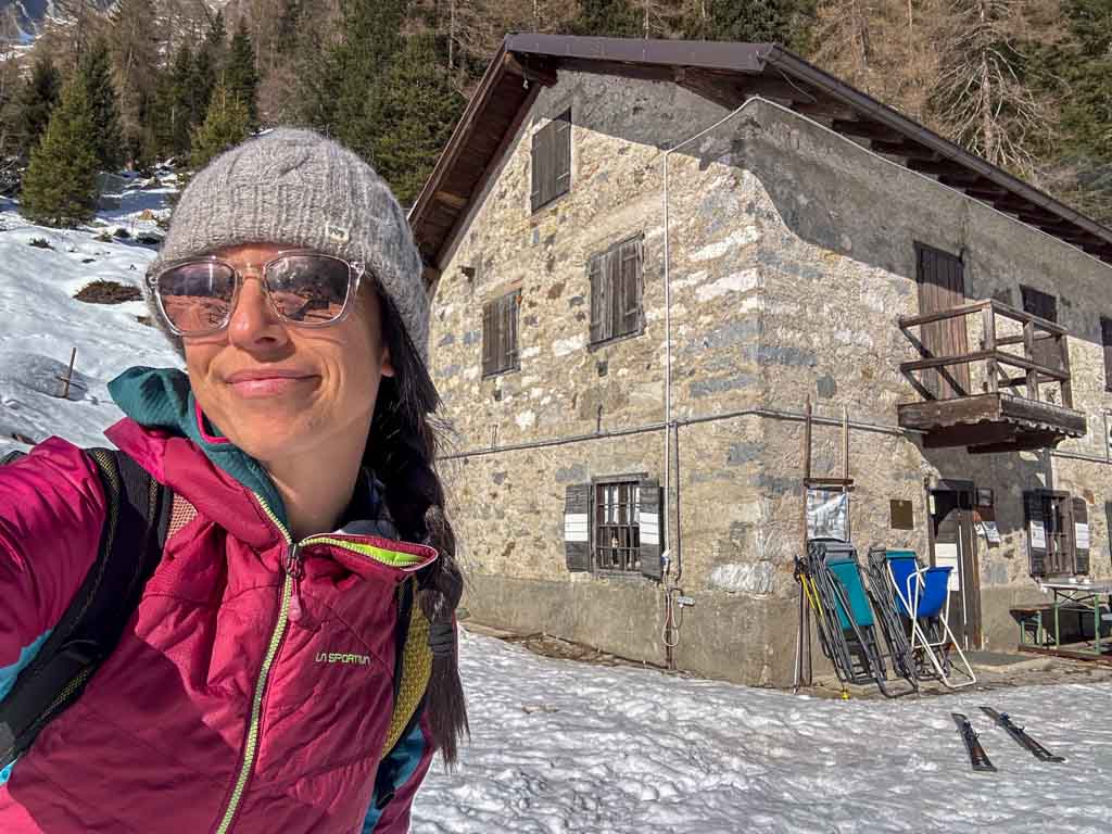 Vista la giornata ne abbiamo approfittato per fermarci sulle sdraio al sole. Importante: il cellulare qui non prende ed è precisa scelta del rifugio di non dare la password del wifi, a meno che non si tratti di emergenze. Fate tesoro di questo regalo per rimanere disconnessi dalla tecnologia per un po’. Chi mangia qui può anche prendere la slitta per la discesa.