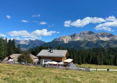 Aperta fino al 5 ottobre 2025, vale comunque la pena arrivare fin lì anche se è chiusa, perchè posizionata in un posto tranquillo e bucolico. Se camminate altri dieci minuti tenendo la struttura sulla sinistra avrete una vista incredibile sul Latemar. In un’oretta da qui potete raggiungere anche Malga Gurndin a Passo Oclini o Malga Costa (voci seguenti). Neuhütte: 340.2584810