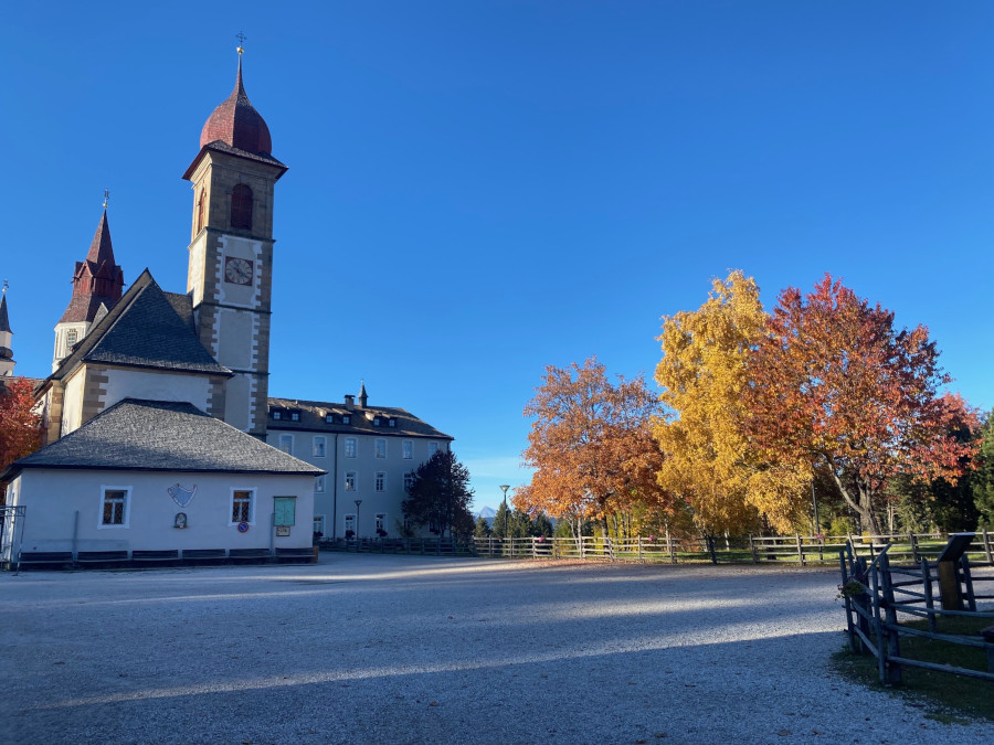 Secondo la tradizione nel 1553 il contadino Leonhard Weißensteiner vide apparire qui la Madonna. Guarito dalla malattia che lo affliggeva, fece costruire una cappella in segno di gratitudine. Questa cappella oggi si chiama Eremo di San Leonardo ed è raggiungibile in circa venti minuti di passeggiata dal Santuario.