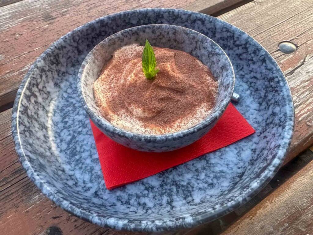 E per finire un ottimo tiramisù, ma sono tanti i dolci che si possono ordinare: strudel, gelato del contadino, Kaiserschmarren, yogurt con frutti di bosco e varie torte preparate al maso.
