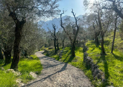 Giro ad anello di circa tre ore, che permette di attraversare l’olivaia di Arco vivendo un’esperienza immersiva. Tre ore circa, 300 metri di dislivello, che dalla città portano a passeggiare in zone naturalistiche molto belle e con panorama sul Lago di Garda. 14 installazioni lungo il percorso, alcune interattive, che permettono di conoscere meglio il prezioso olio del Garda Trentino. Il racconto della nostra gita la trovate in questo articolo.