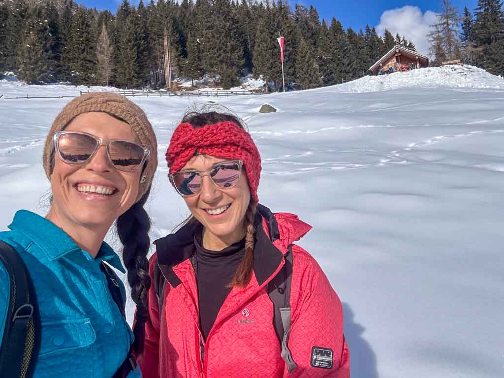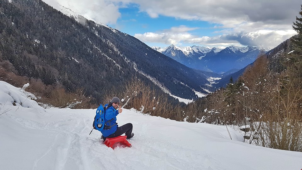 Facile da raggiungere dal parcheggio accanto al Rifugio Todesci in Predaia (40 minuti circa ed un dislivello di 170 metri) Malga Rodeza a quota 1.570 metri vi aspetta in inverno il sabato e la domenica. Sempre meglio chiamare per essere certi dell’apertura, che dipende dalle condizioni meteo e dalla quantità di neve: 377.5965628. Utile anche prenotare, perchè non ci sono tantissimi posti. Al quatto anno di gestione Annisoara (con me in foto) e sua sua suocera, che in cucina prepara piatti tipici fatti con amore. Noi abbiamo preso stinco con patate al forno, polenta con spezzatino e una sbrisolona con panna montata.