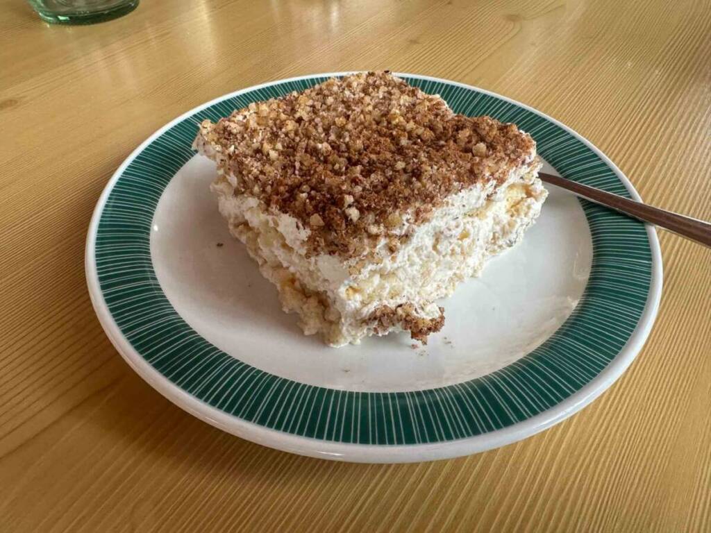 Non mancano tantissimi sciroppi fatti in casa e soprattutto le torte, una più invitante dell’altra! Da non perdere assolutamente lo Schneemilch, questo dolce preparato con pane secco, panna montata, cannella ed uvetta… una bontà difficile da spiegare e ricetta super tipica. Non manca nemmeno il Kaiserschmarren, la frittata dolce con marmellata di ribes. La prossima volta la proviamo!