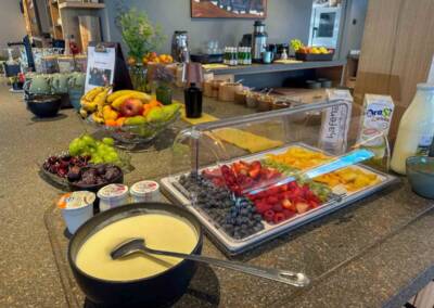 Meraviglioso fare colazione in terrazza al sole, ammirando il panorama circostante. Quando si parla di relax vero, ecco, penso a questo: mangiare cibi sani in un ambiente bello esteticamente e dove tutto ruota attorno alla tranquillità.