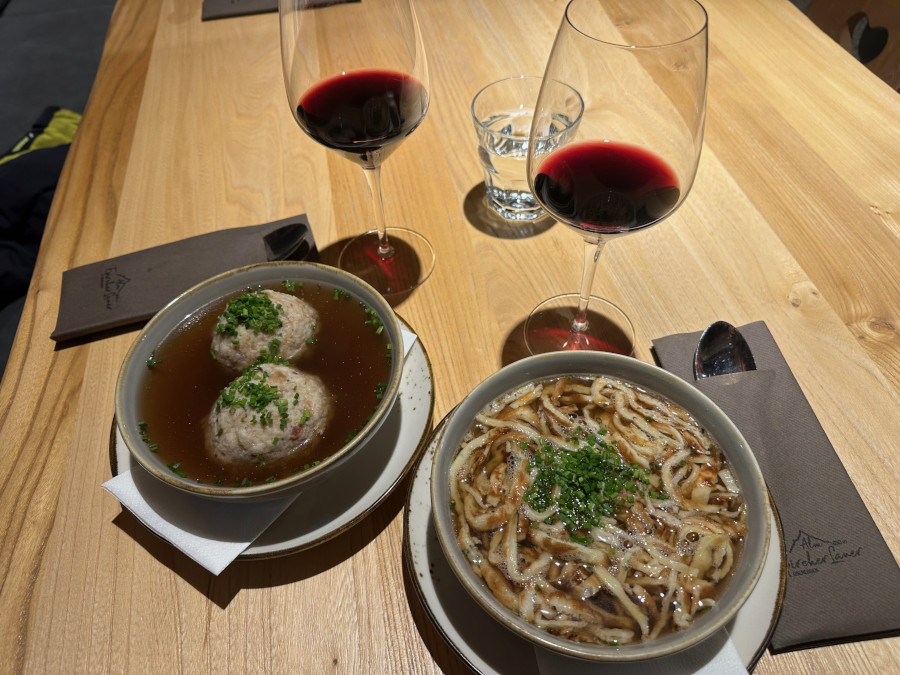 All’Oberholz, a poco più di 2000 metri di altitudine, si può arrivare sci ai piedi da qualsiasi parte della ski area Latemar, con la seggiovia che parte da Obereggen, oppure con una camminata di un’oretta prima accanto alle piste e poi nel bosco. Alla meta vi attende una struttura architettonica all’avanguardia, con tre ampie vetrate che si affacciano su altrettanti massicci montani. L’interno è caratterizzato da pareti sinuose in legno che ammorbidiscono gli spazi e li rendono delle nicchie che accolgono il visitatore. I piatti sono decisamente di livello (se volete mangiare accanto alle vetrate – un must – prenotate!), quindi la vista qui si unisce con il gusto. Noi abbiamo provato un’ottima cotoletta con patate, canederli pressati e come dolce creme brulè e una torta alla ricotta spaziale.
