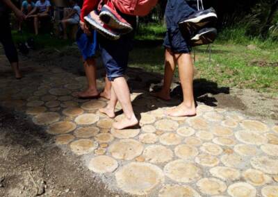Si tratta di un sentiero custodito e curato appositamente per la camminata a piedi nudi a cui si aggiunge il percorso sensoriale “A piedi nudi sul tempo” dedicato ai tempi del suolo grazie al quale partendo dallo strato più recente ( la lettiera composta da foglie, semi, rametti) e passando allo strato di humus originatosi dalla parziale degradazione del materiale organico e poi a limo, sabbia, argilla e, più in profondità, ciottoli sempre più numerosi e grossi si raggiunge la roccia madre, nel tentativo di riconnettersi all’incessante lavoro della natura che da 12’000 anni sta lavorando quel terreno. QUI altre info