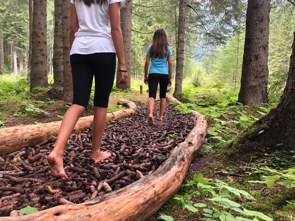 Parte dallo Chalet Valbona, facilmente raggiungibile in telecabina, si immerge tra i boschi e gli alpeggi dell’Alpe Lusia e si chiude nell’oasi naturale di Colvere. È un percorso di “forest bathing” suddiviso in step, che vi porta a vivere la natura attraverso tutti i sensi. Si parte con il “trehugging”, ovvero la pratica celtica di abbracciare gli alberi per assorbire la loro energia positiva; si prosegue con il barefooting, camminando scalzi su muschio, cortecce e foglie; e si chiude con l’esperienza Kneipp, immergendo i piedi nelle acque fresche e pure di un ruscello di montagna. Info QUI
