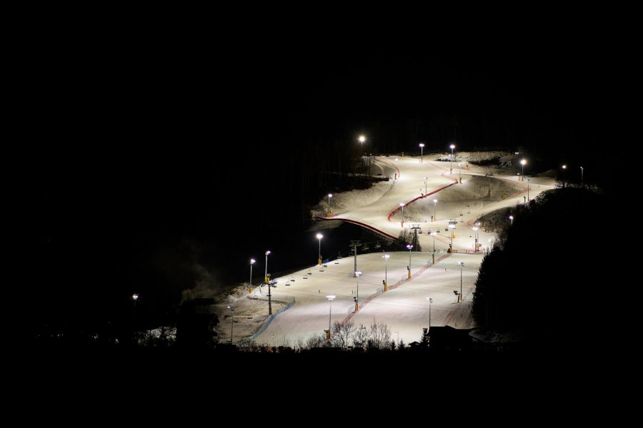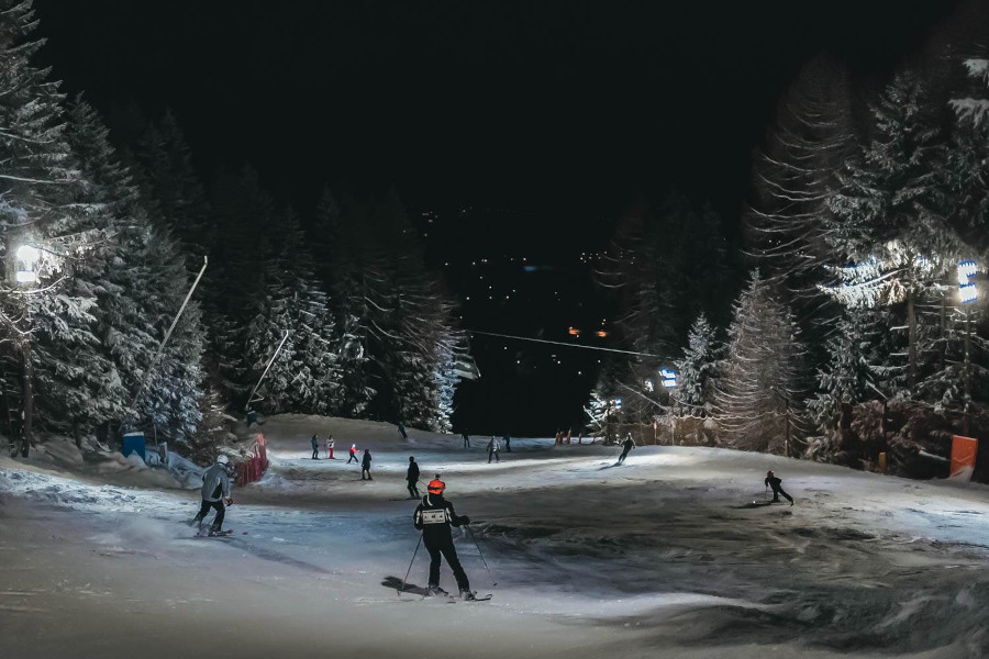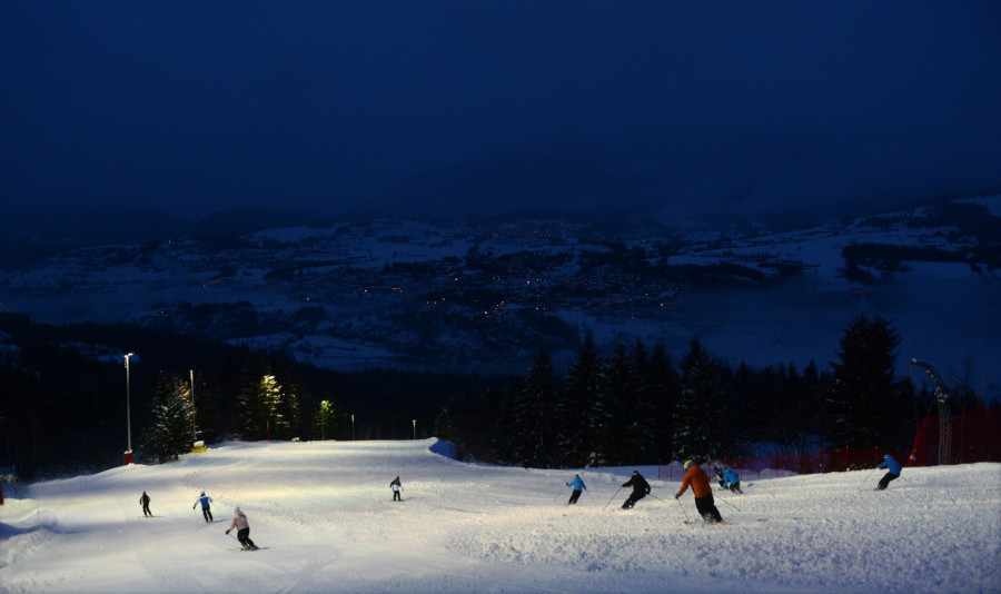 Sul Monte Bondone si scia in notturna con un nuovo sistema di illuminazione a LED ad alta efficienza sulle piste: Diagonale Montesel (blu), Cordela (blu), Lavaman (rossa), Lavaman variante gare (rossa) e lo Snowpark.