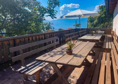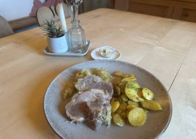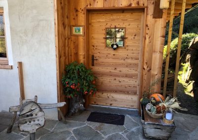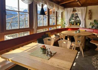 Bellissimo maso con vista sulla conca meranese e le montagne del Tessa, offre in autunno la possibilità di assaggiare krapfen alle castagne, marmellata di albicocche o semi di papavero, grigliata mista con crauti e canederli, salsiccia della casa con crauti, vellutata di zucca e zuppa d’orzo.