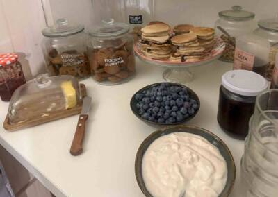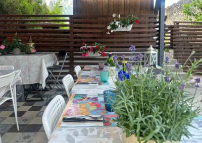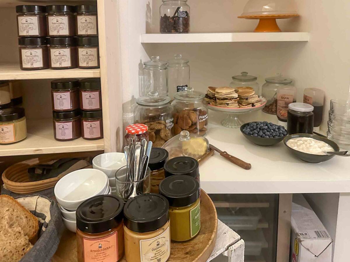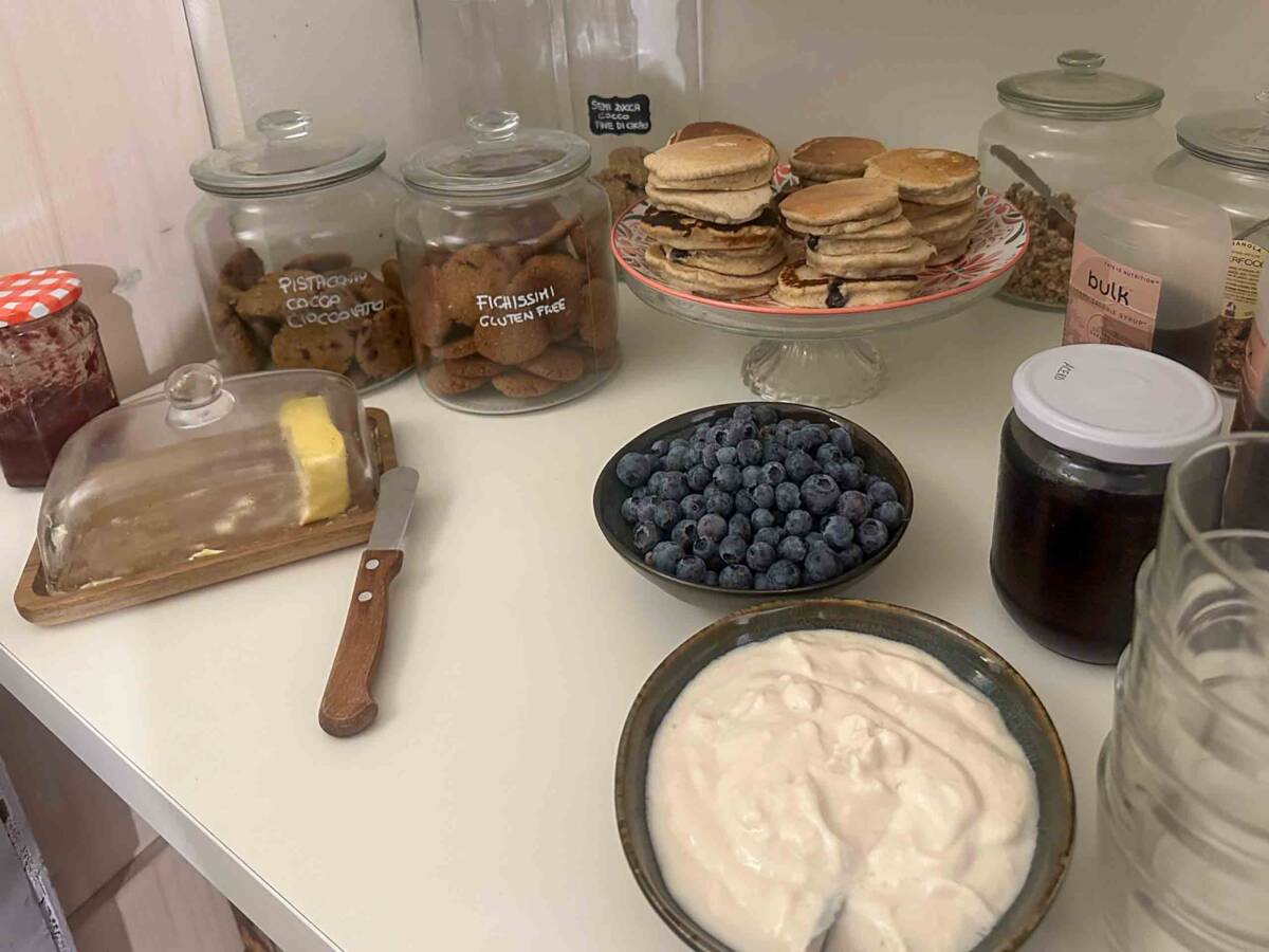E che dire delle colazioni? Ogni mattina siamo state sorprese da pancakes e waffles, con frutta fresca e yogurt vegetale, granola e muesli, pane fresco con le loro deliziose creme spalmabili, e poi biscotti gustosi anche privi di glutine e latticini. La bellezza di mangiare nel cortile esterno, poi!