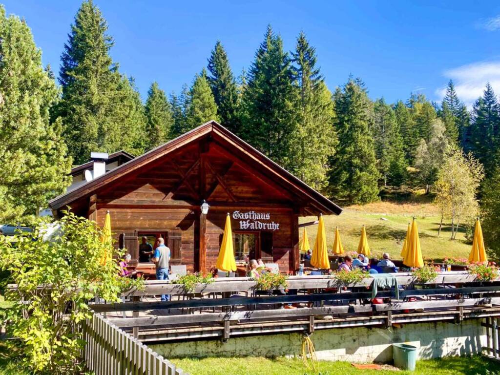 La passeggiata sale tranquilla su strada forestale. Due i punti di ristoro, posizionati a poca distanza dal lago: Malga San Felice, aperta solitamente tutti i giorni da metà giugno a inizio novembre, e la Gasthaus Waldruhe, aperta solitamente da fine maggio a inizio novembre.