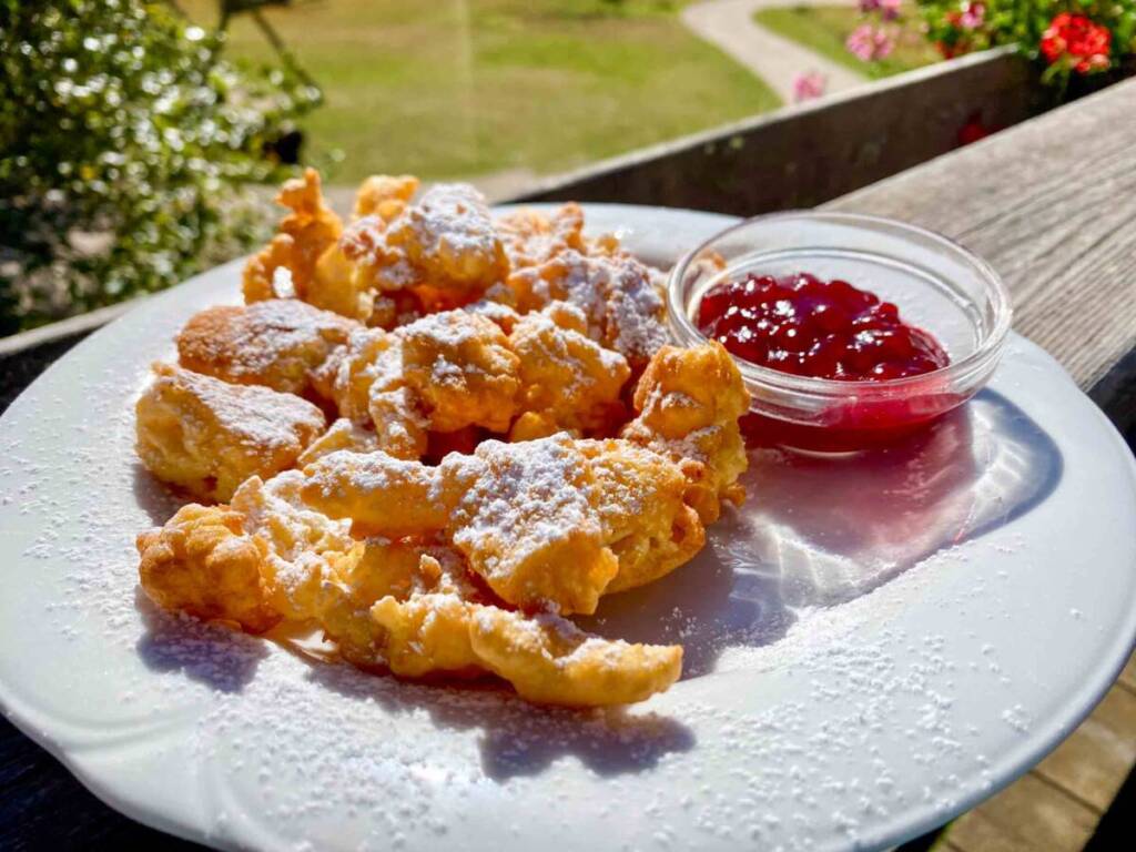 …un ottimo Kaiserschmarren, che ci ricordava un po’ lo strauben. Una delizia con la marmellata di mirtilli rossi!