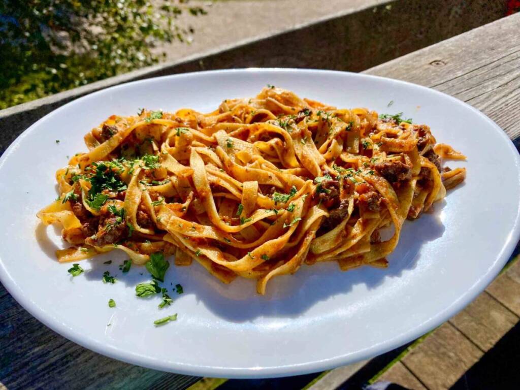 Qui abbiamo mangiato molto bene: tagliatelle al ragù di cervo…