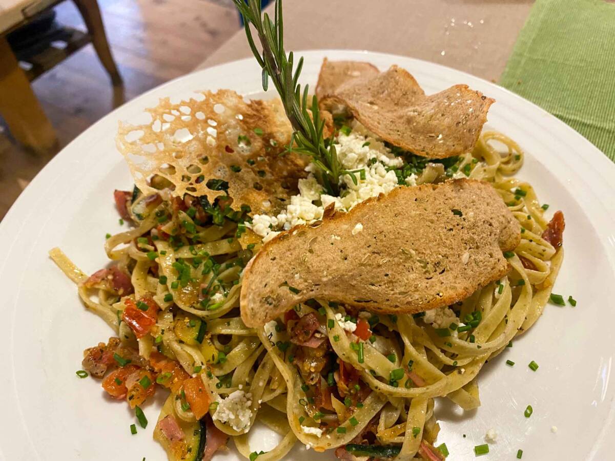 Addentrandovi nella vallata arrivare alla Adleralm (aperta dal 6 dicembre 2025, 335 242613), con un menù ricco e variegato, qualità dei piatti ottima. La struttura è caratteristica, con tanto legno e dettagli tipici dei rifugi altoatesini gestiti con passione. Deliziosa la veranda che dà sull’esterno e dove scoppietta allegramente il fuoco della stufa. Consigliato andarci soprattutto durante la settimana.