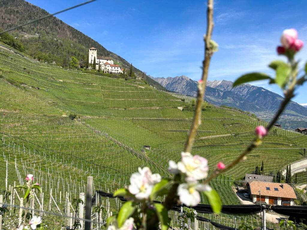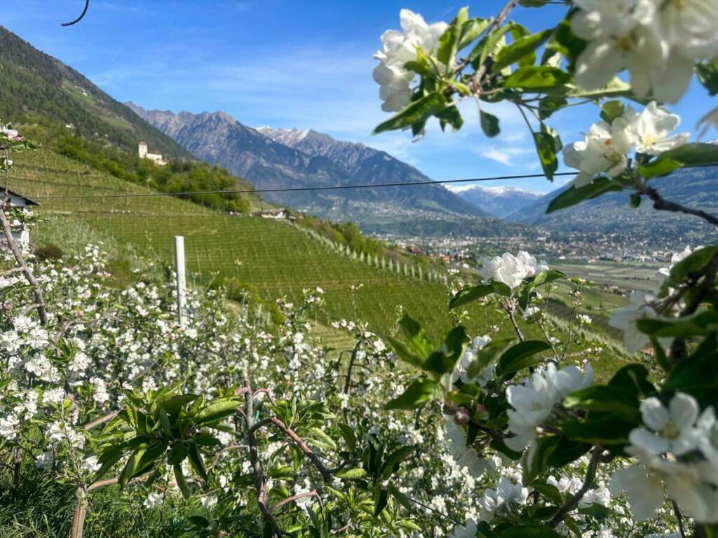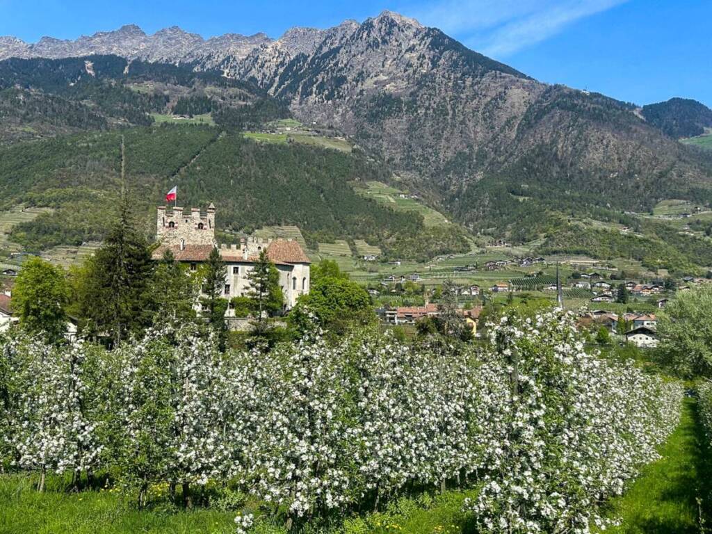Dopodiché seguite le indicazioni per la Roggia di Marlengo, con i suoi 12 chilometri circa che passano sopra i paesini di Cermes e Marlengo fino ad arrivare a Tel. Solo il primo tratto (una ventina di minuti circa) è in salita, poi è praticamente pianeggiante. Accanto a voi scorrerà praticamente sempre una roggia, con lo scrosciare dell’acqua che accompagna dolcemente la passeggiata. Quando ci siamo state noi, verso metà aprile, la fioritura dei meli era nel pieno della sua bellezza. Uno spettacolo naturale incredibile.