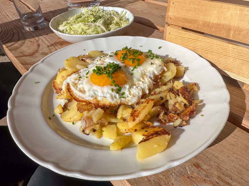 Attiva dall’estate 2025, questa baita privata propone i piatti della cucina altoatesina. Alcuni piatti fissi nel menu, altri che dipendono dalle giornate. per noi tris di canederli (formaggio, spinaci, rapa rossa) su salsa di gorgonzola e uova con patate arrostite. Tutto squisito.